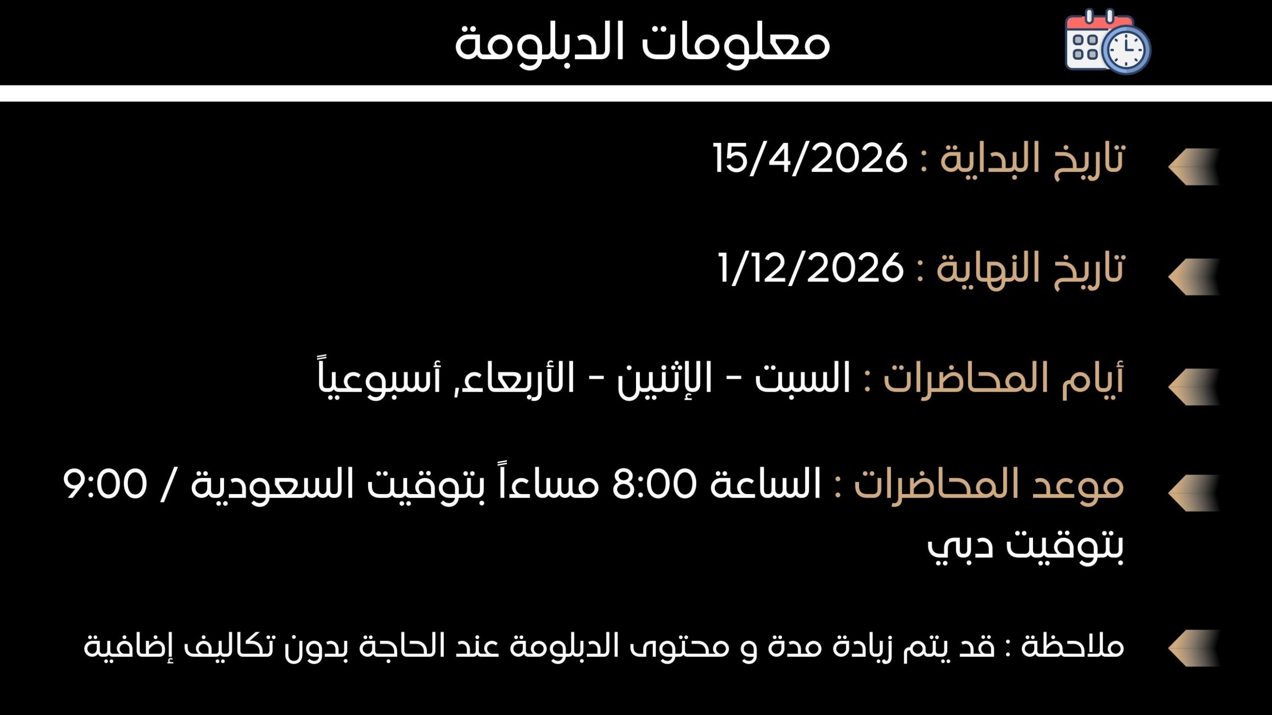 4- All the diploma lectures are recorded, each lectures record will be available after 24 hours of the end of the live lecture and will be available for 7 days to be downloaded.